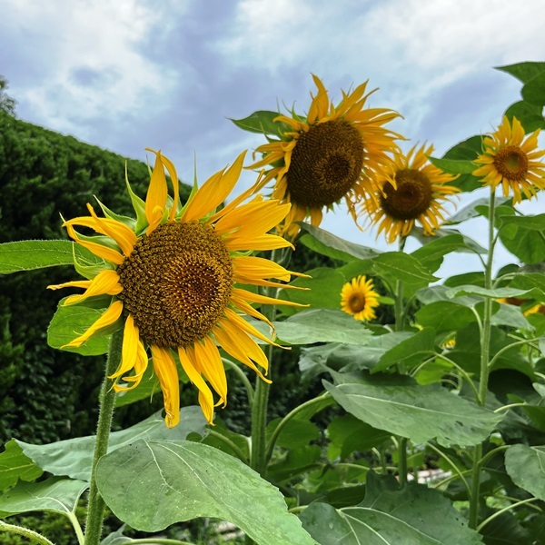 どんよりとした梅雨の日、『樹のトンネル』 の横で、ヒマワリが満開だった。 (7/10)