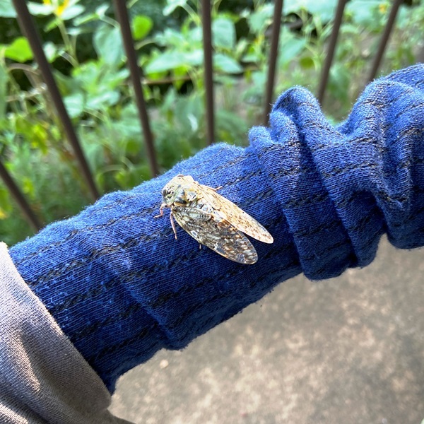 休憩していたニイニイゼミを腕に乗せてみた。