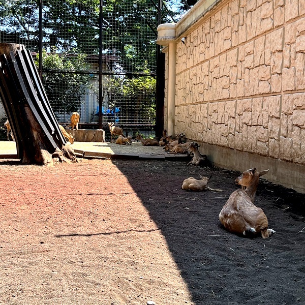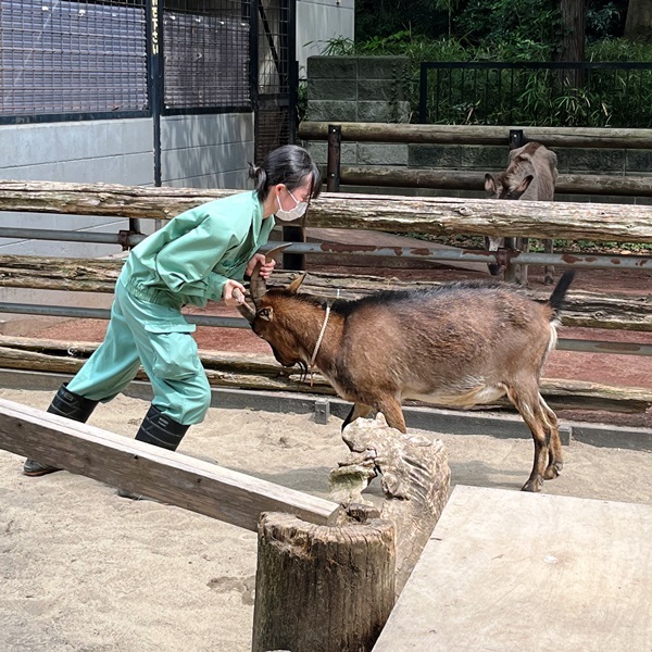 ヤギは暑さに弱いと思うんだけど、“タンゴ” は飼育員さんと元気に遊んでいる。
