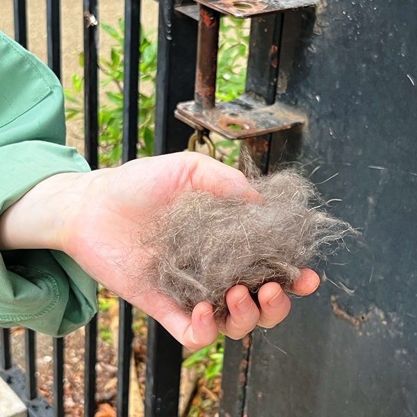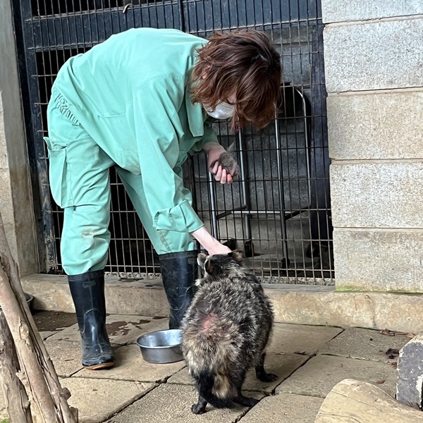 獣医さんが、ホンドタヌキの冬毛を取ってあげていた。