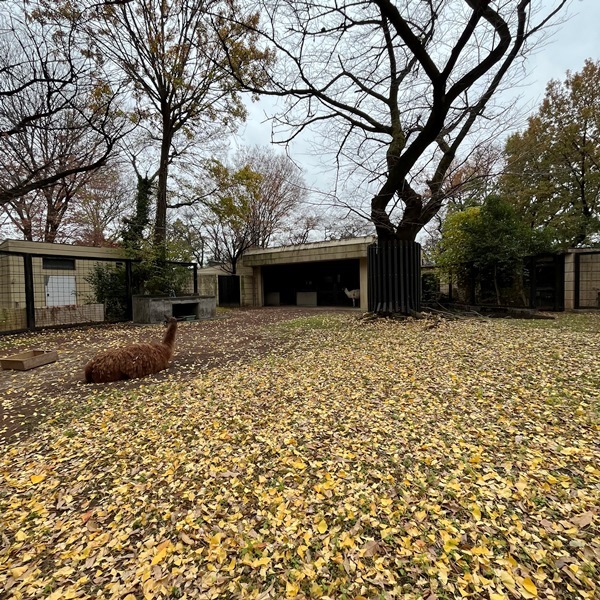 ラマのいるグランドもイチョウの落ち葉で真っ黄色。