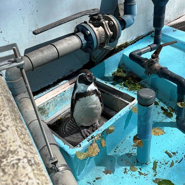 ペンギンたちに少しでも快適に過ごしてもらえるよう、飼育員さんが5月5日に設置。