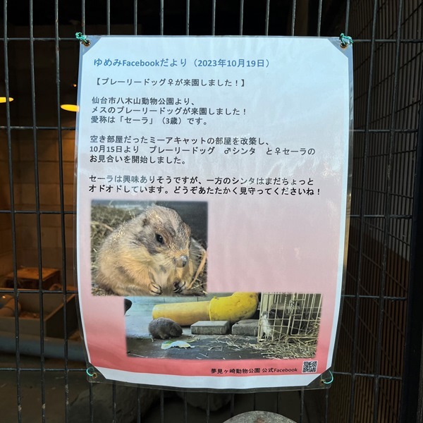 仙台市の八木山動物公園からプレーリードッグのメスが来園したとニュースになったのは、昨年10月19日のこと。