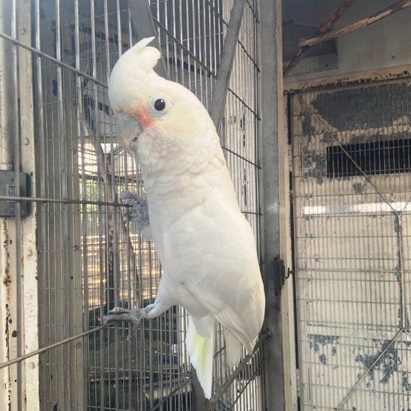 シロビタイムジオウムのチーコ♀は、滅多に近くにはきてくれないので、これは貴重な写真。