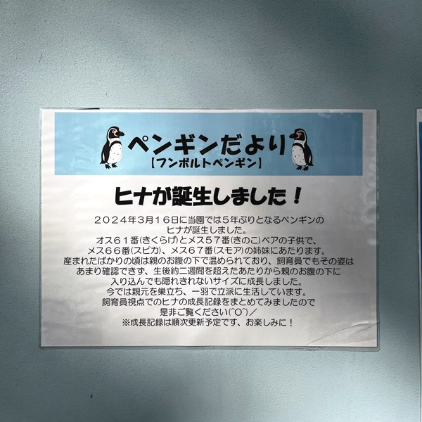 今年3月に生まれた『ツララ』の性別がメスだと判明。