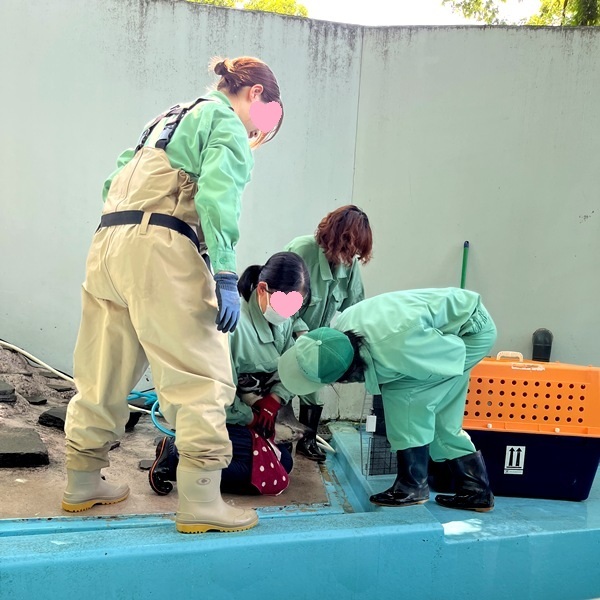 この日はプールを清掃する日。